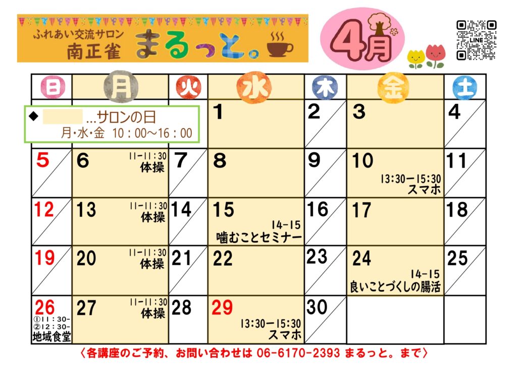 お問い合わせは、お電話もしくはLINEからお願いいたします。『まるっと。』についてのご質問や見学のご相談、講座や催しのご予約は電話でも承っていますので、気兼ねなくご連絡ください★